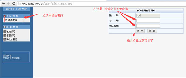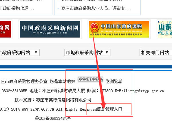 拉到網(wǎng)站的底部,找到信息管理入口點(diǎn)擊進(jìn)入;蛑苯哟蜷_:http://www.zzgp.gov.cn/zztt/這個(gè)地址就可以進(jìn)入后臺(tái)