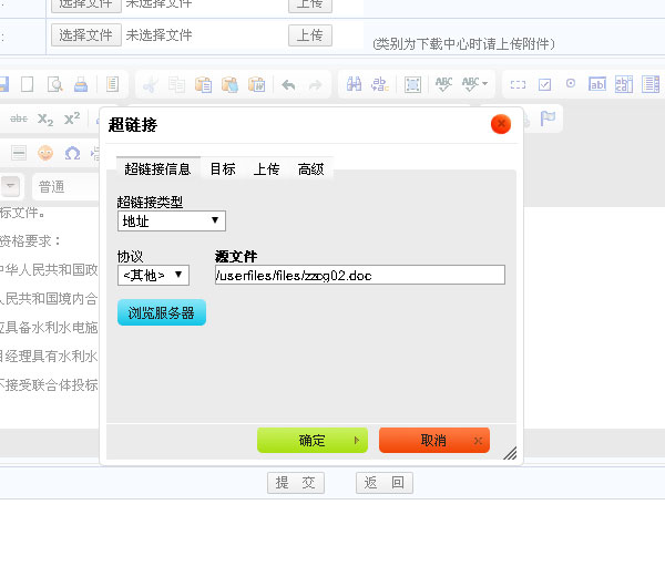 然后點(diǎn)下面黃色的“確定”就可以了。這就完成了附件的上傳工作,用戶可以從文章中下載這個(gè)文件了。